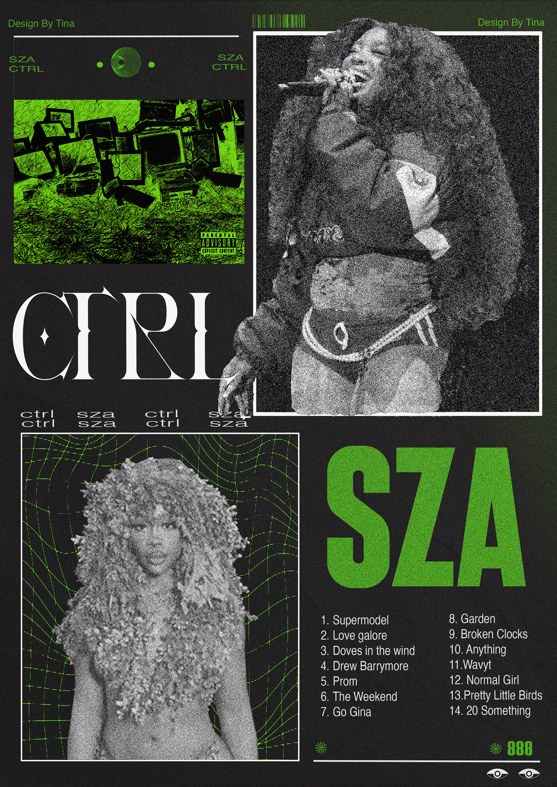 Inspired by SZA's iconic album "CTRL", this design turns setbacks into creativity. Bold textures and vivid green explore themes of control , chaos, and growth.